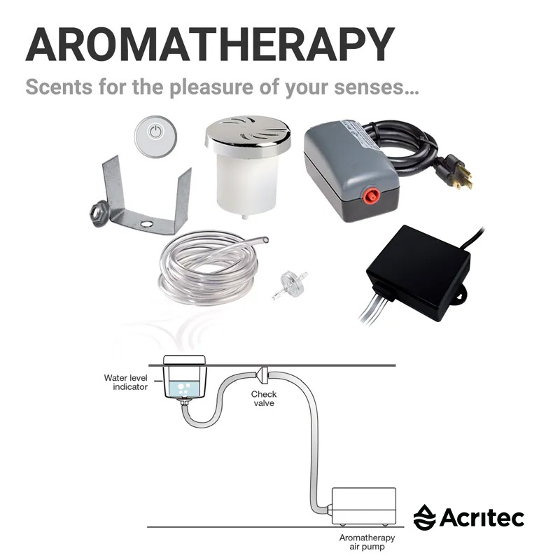 Only a few drops of fragrance are needed. The system works using a pump which leads the air towards the receptacle which is filled with a combination of water and a few essential oil drops. Once the aromatherapy system is turned on, the diffuser spreads the natural scent of the essential oil into the ambient air.