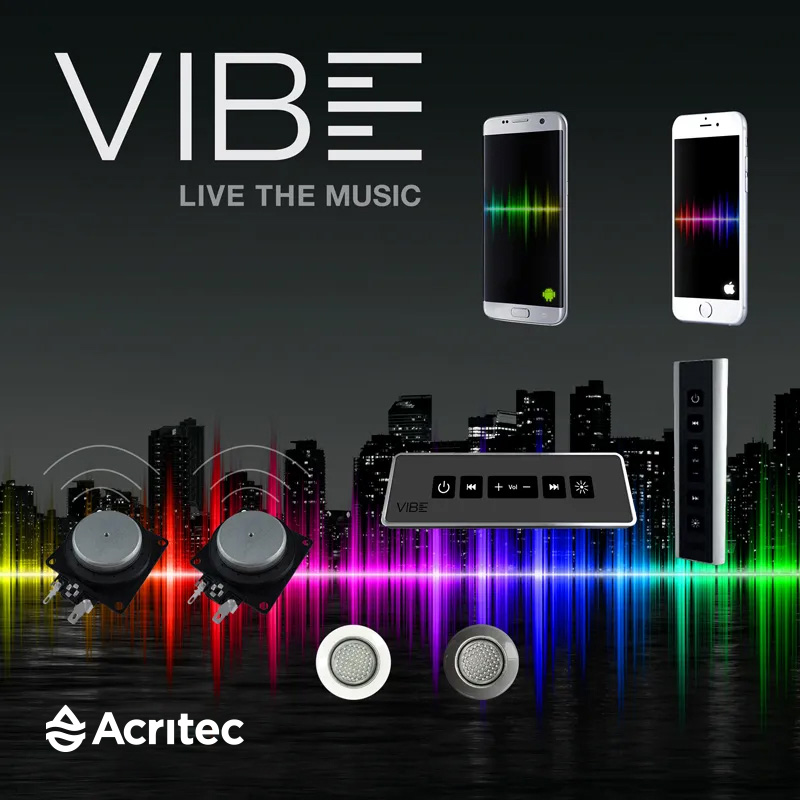 The Vibe Sound System allows you to enjoy your music or radio at the touch of a button in your shower or bathtub. The vibes of the music are synchronized with a Chromatherapy system that will change colors in synch with every beat of your favorite music.